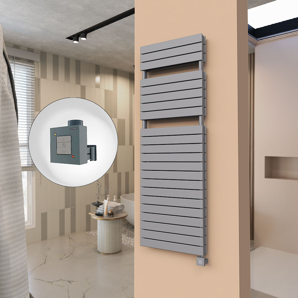 AKS Seçenekleri21H Sèche Serviettes Electrique 600x1772 Anthracite Ktx4 1000 Watt Câble en spirale 22 Tuyeaux |Chauffe 9-27 m2