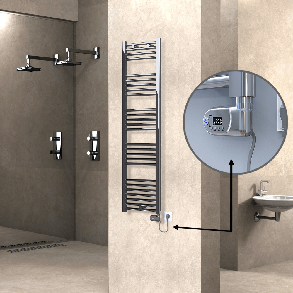 AKS SeçenekleriHaiti Electric Towel Warmer 400x1500 Flat Chrome (KTX3 Thermostat) 300 Watt Spiral Cable 26 Pipes | Heats 2-6 m2 -