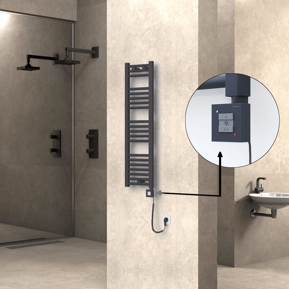 AKS SeçenekleriHaiti Sèche Serviettes Electrique 300x1100 Anthracite Ktx1 300 Watt Câble en spirale 20 Tuyeaux |Chauffe 2-5 m2 -