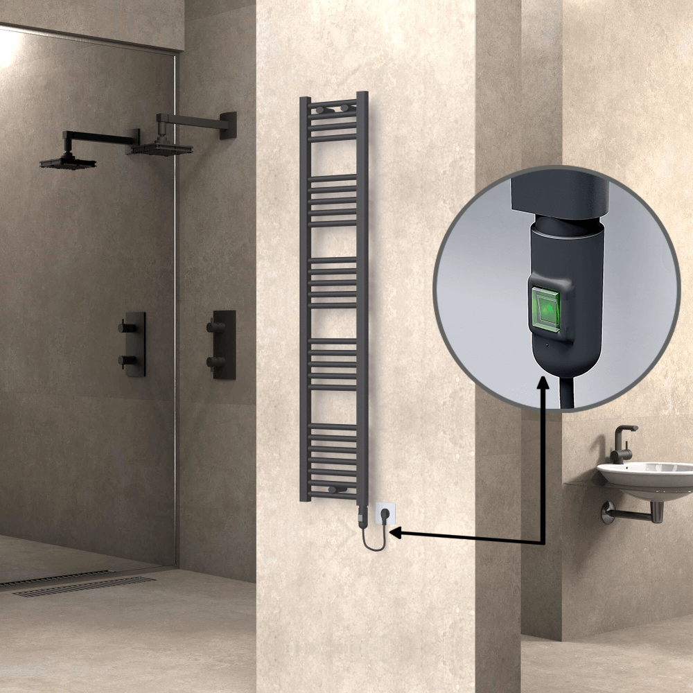 Haiti Electric Towel Warmer 300x1500 Flat Anthracite Textured (On/Off Button) 600 Watt