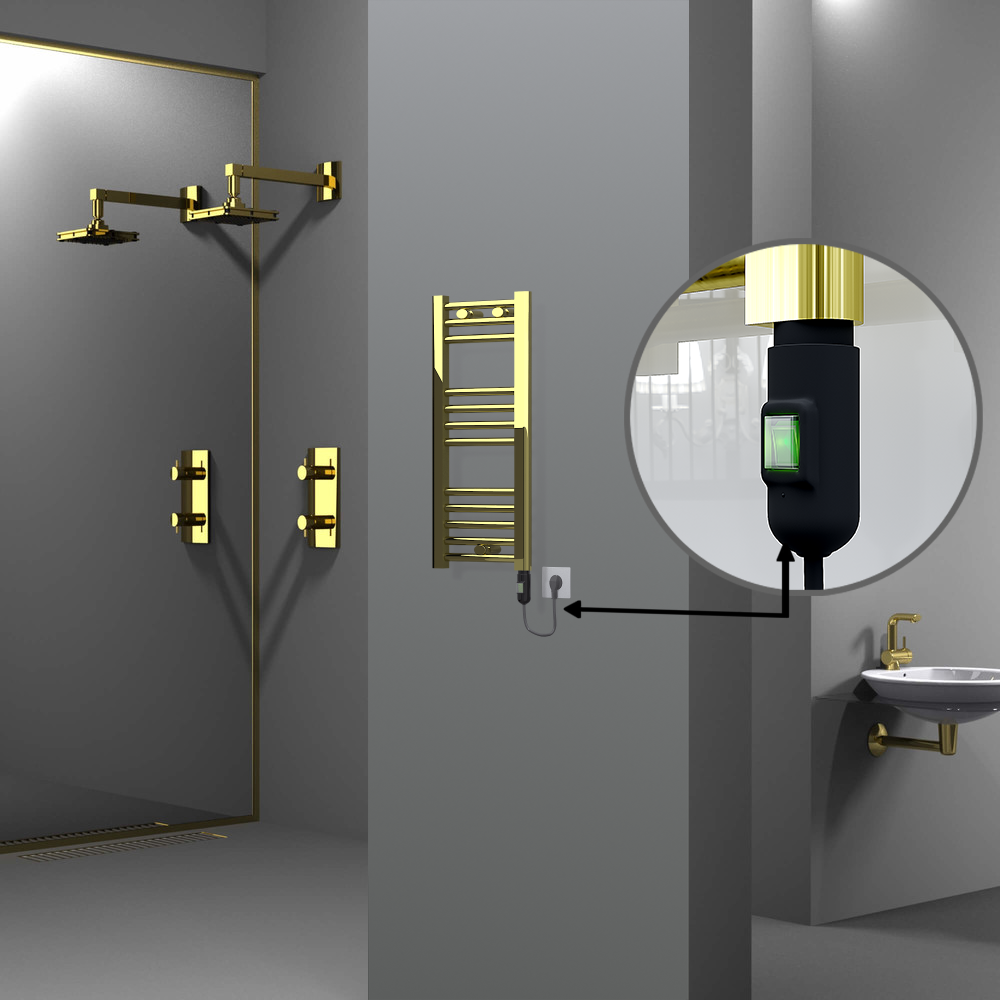AKS SeçenekleriHaiti Electric Towel Warmer 300x700 Flat Gold (OneD On/Off ) Left 200 Watt 12 Pipes | Heats 1-2 m2 -