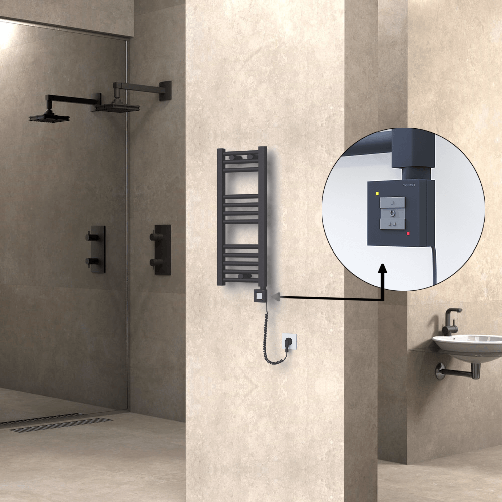 AKS SeçenekleriHaiti Sèche Serviettes Electrique 300x700 Anthracite Ktx1 200 Watt Câble en spirale 12 Tuyeaux |Chauffe 1-3 m2 -