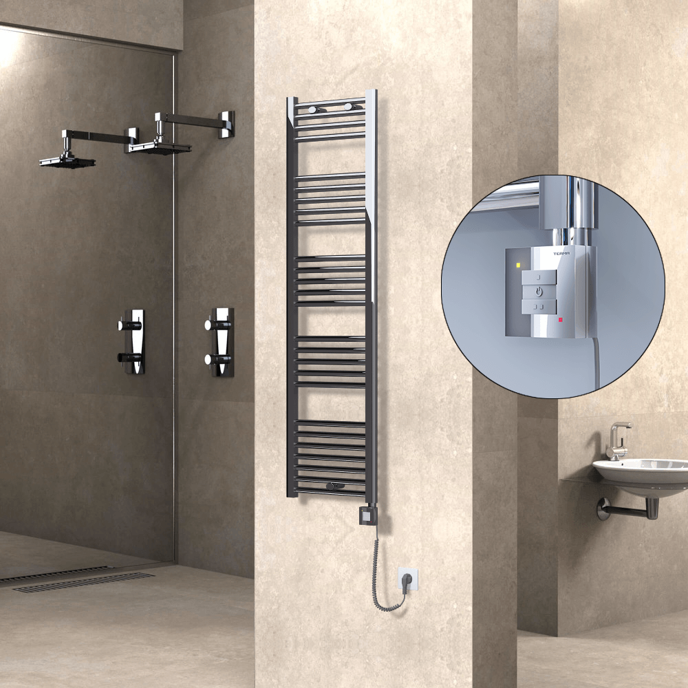 AKS SeçenekleriHaiti Sèche Serviettes Electrique 400x1500 Anthracite Ktx1 600 Watt Câble en spirale 26 Tuyeaux |Chauffe 3-9 m2 -