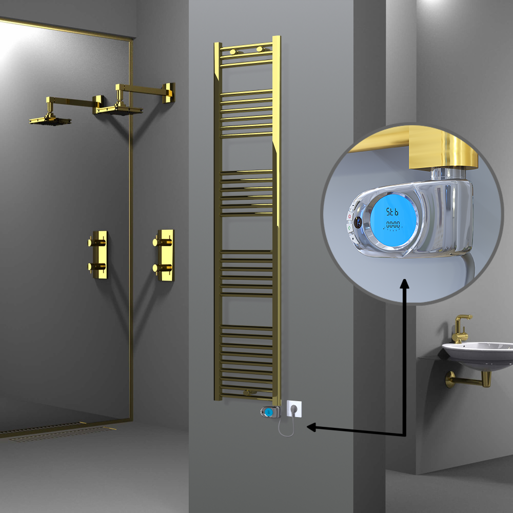 AKS SeçenekleriHaiti Sèche Serviettes Electrique 400x1800 Or (Thermostat Thesis) 300 Watt 30 Tuyeaux |Chauffe 2-6 m2 -