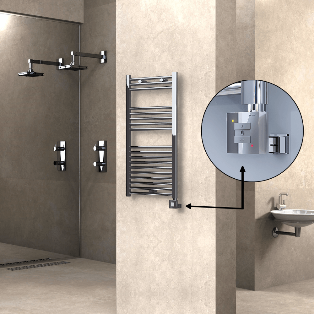 AKS SeçenekleriHaiti Sèche Serviettes Electrique 300 Watt 500x1000 Plat Chrome (OneD On/Off ) Droit 18 Tuyeaux |Chauffe 2-5 m2 -