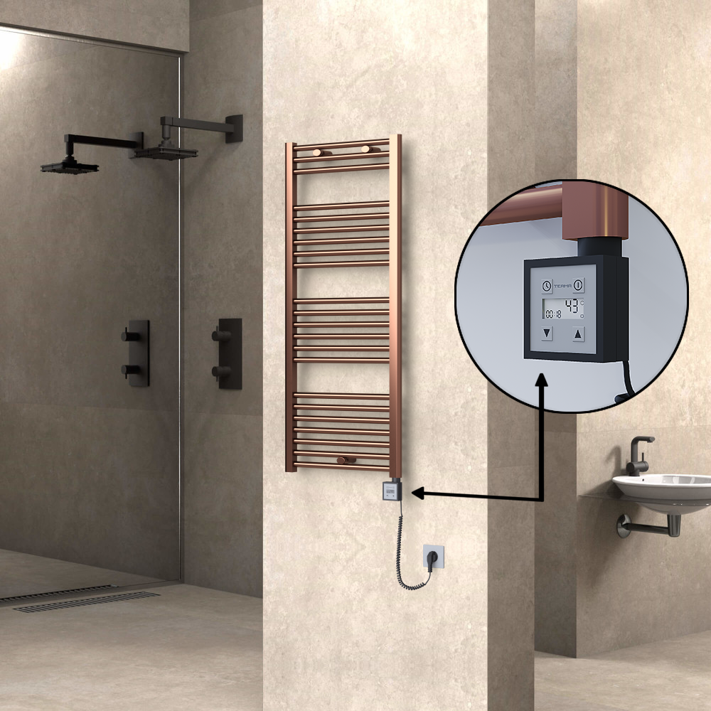 AKS SeçenekleriHAITI Elektrikli Havlupan 500x1200 Düz Bakır Eskitme (KTX4 Termostat) 300W Spiral Kablolu 22 Borulu | 2-6 m2 Isıtır