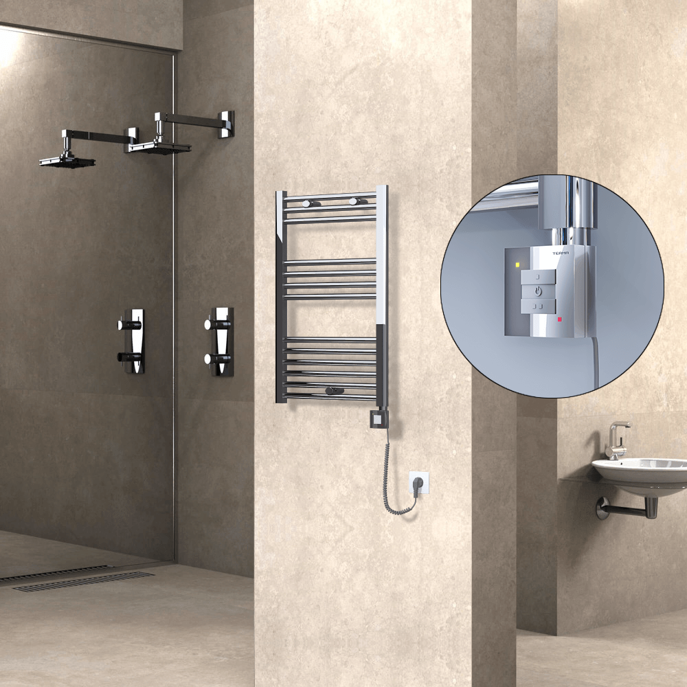 AKS SeçenekleriHaiti Electric Towel Warmer 500x800 Flat Chrome (KTX1 Thermostat) 200 Watt 13 Pipes | Heats 1-4 m2 -