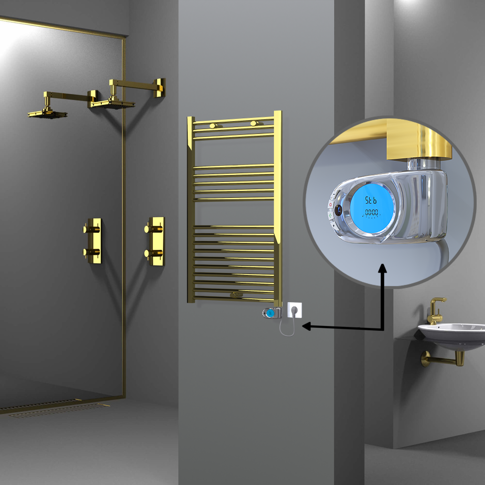 AKS SeçenekleriHaiti Electric Towel Warmer 600x1000 Flat Gold (KTX3 Thermostat) 300 Watt 18 Pipes | Heats 2-5 m2 -