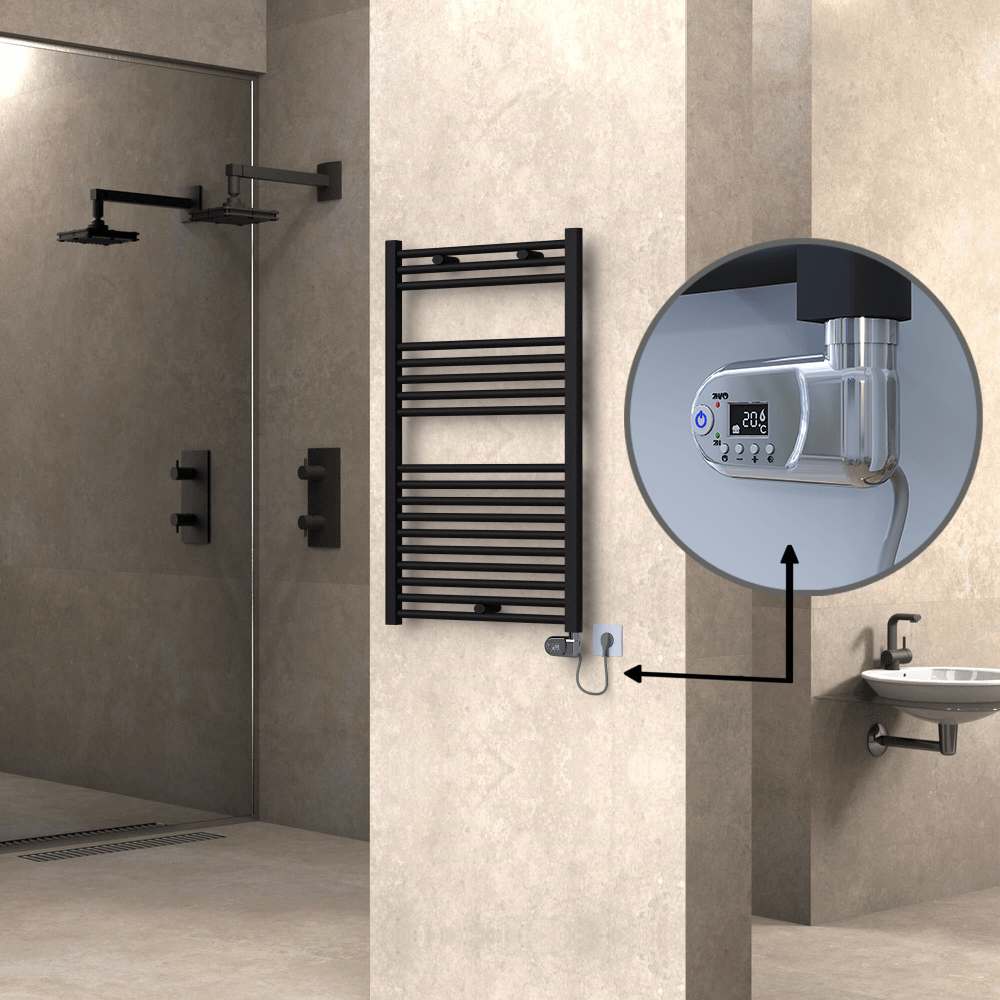 AKS SeçenekleriHAITI Elektrikli Havlupan 600x1000 Düz Siyah (KTX4 Termostat) 600W Spiral Kablolu 18 Borulu | 3-8 m2 Isıtır