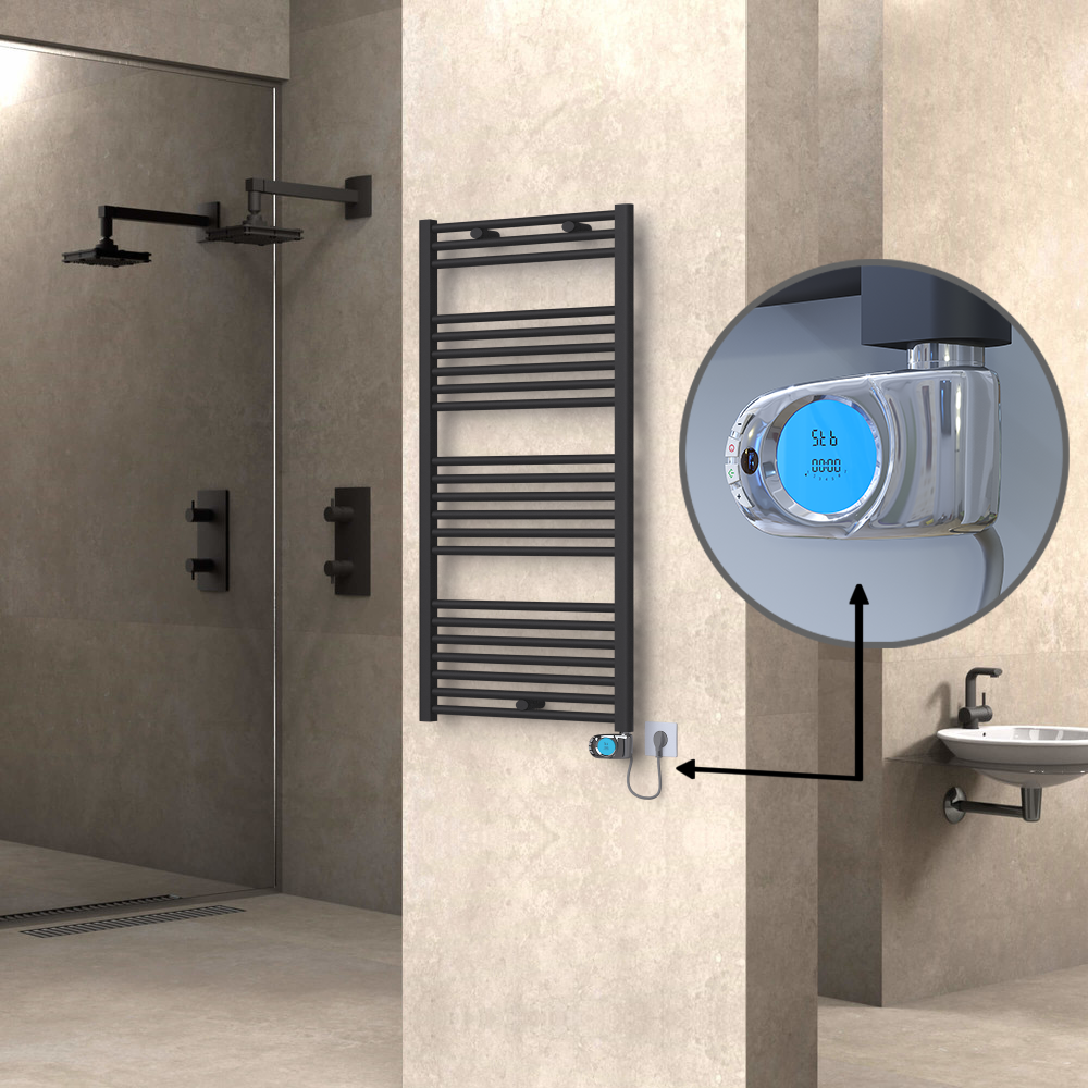 AKS SeçenekleriHaiti Electric Towel Warmer 600x1200 Flat Black Matt (Musa Thermostat) 600 Watt 22 Pipes | Heats 3-10 m2 -
