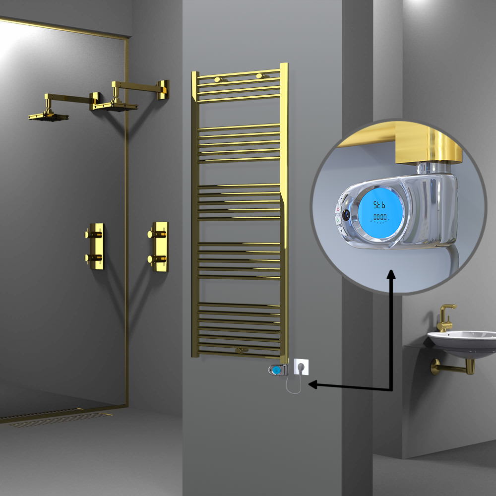 AKS SeçenekleriHaiti Electric Towel Warmer 600x1500 Flat Gold (KTX4 Thermostat) 600 Watt Spiral Cable 26 Pipes | Heats 3-8 m2
