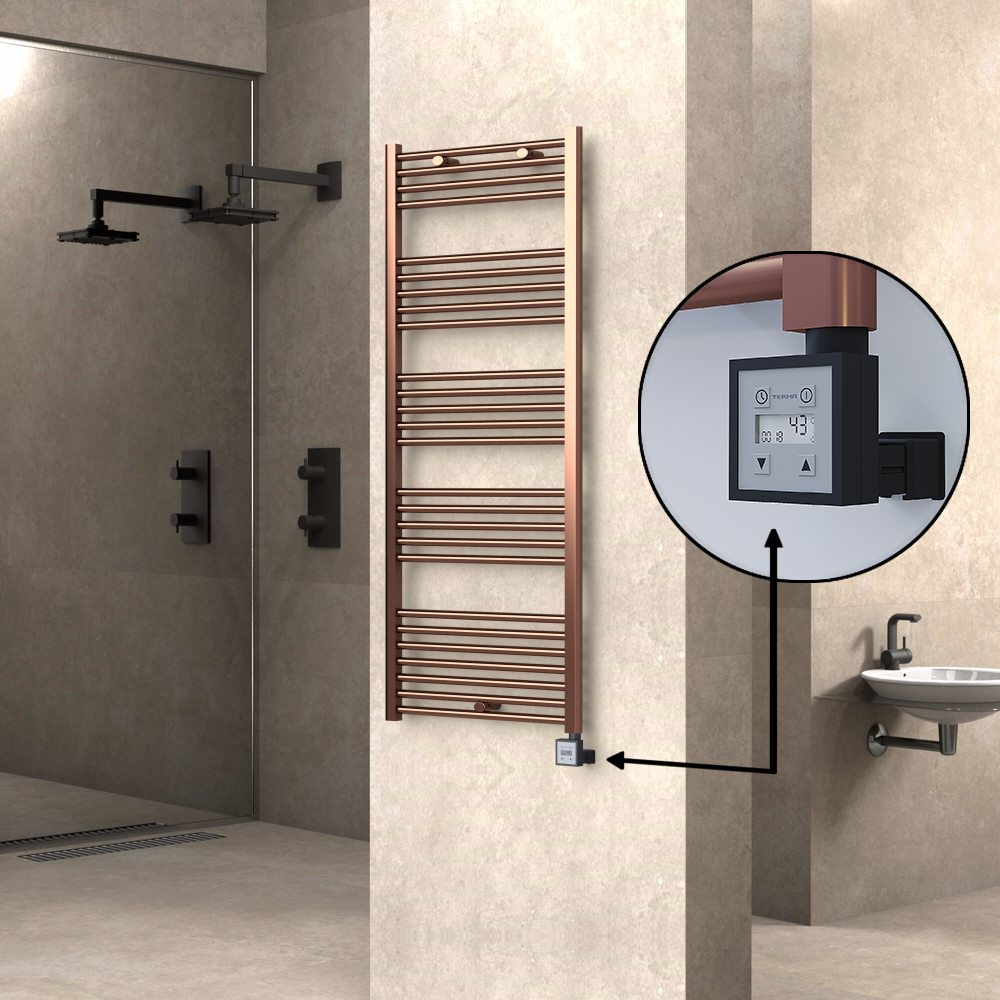 AKS SeçenekleriHaiti Electric Towel Warmer 600x1500 Flat Antique Copper Gloss (KTX3 Thermostat) 600 Watt 26 Pipes | Heats 3-8 m2 -