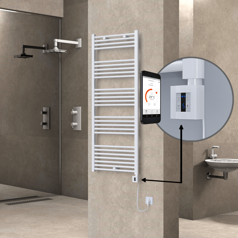 AKS SeçenekleriHaiti Sèche Serviettes Electrique 600x1500 Blanc Ktx1 1000 Watt Câble en spirale 26 Tuyeaux |Chauffe 4-12 m2 -