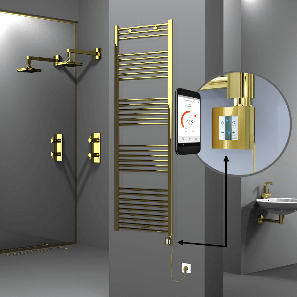 AKS SeçenekleriHaiti Sèche Serviettes Electrique 600 Watt 600x1800 Plat Or Ktx3 30 Tuyeaux |Chauffe 3-9 m2 -