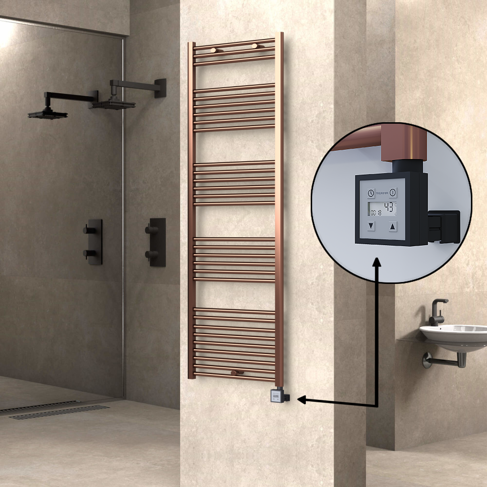 AKS SeçenekleriHaiti Electric Towel Warmer 600x1800 Flat Antique Copper Gloss (Thesis Thermostat) 600 Watt 30 Pipes | Heats 3-9 m2 -