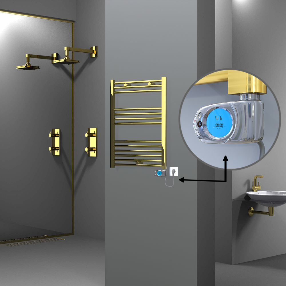 AKS SeçenekleriHaiti Electric Towel Warmer 600x800 Flat Gold (KTX4 Thermostat) 300 Watt Spiral Cable 13 Pipes | Heats 1-4 m2