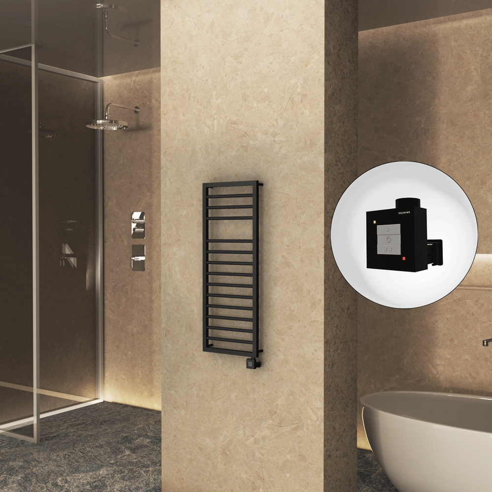 AKS SeçenekleriNaxos Sèche Serviettes Electrique 500x1193 Noir mat Ktx1 600 Watt 13 Tuyeaux |Chauffe 2-7 m2
