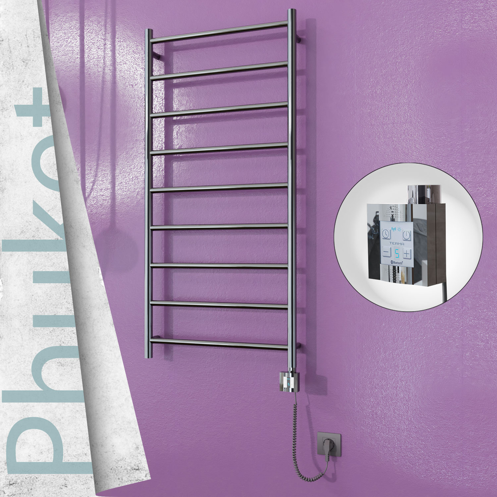 AKS SeçenekleriPhuket Sèche Serviettes Electrique 600x1200 Finition de polissage (Thermostat Musa) 300 Watt 11 Tuyeaux | Chauffe 1-4 m2 -